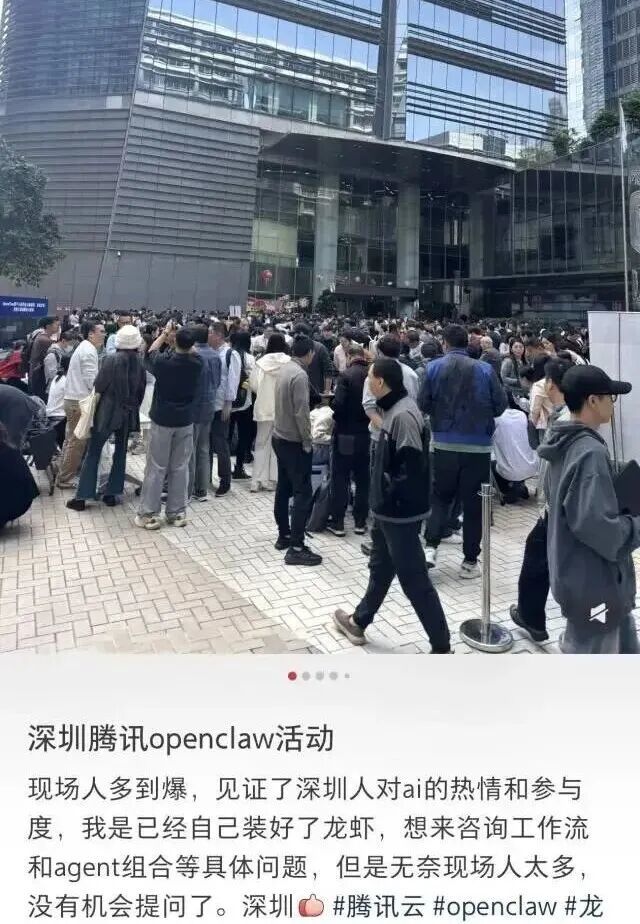 深圳腾讯总部楼下排队装OpenClaw的新闻、抖音上“全民养龙虾”的视频,还有各种教程、截图、晒Agent任务的帖子,几乎一夜之间就刷满了社交媒体。